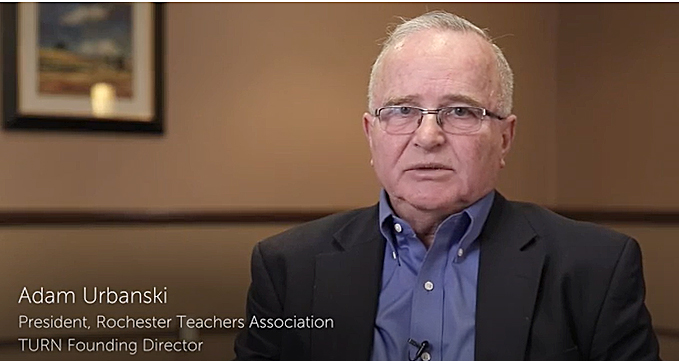 Adam Urbanski is the longtime president of the Rochester Teachers Association and vice president of the American Federation of Teachers. He is the director of the Teacher Union Reform Network (TURN), an organization of teachers’ unions and teachers’ union members who advance left-wing and union-friendly education reforms. He is a former social studies teacher and university professor.