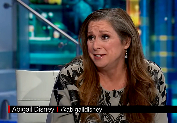 Abigail Disney, a grandniece of Walt Disney, is a liberal activist and, filmmaker. She is the co-founder, along with her husband Pierre Hauser, of the Daphne Foundation and the founder of Peace is Loud, which runs publicity campaigns for her own films.